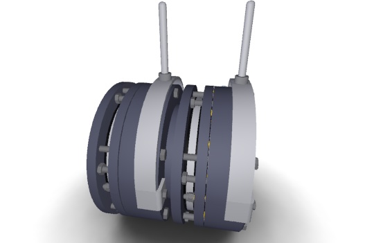 В случае отсутствия подачи тока на катушке (2) тормозной диск (4) фрикционными накладками прижимается якорем (3) к крепежному фланцу (6) силой пружин. Тормозной момент передается с тормозного диска через шпонку (10) на втулку (5), расположенную на валу двигателя. Величину тормозного момента регулируется количеством пружин (8).